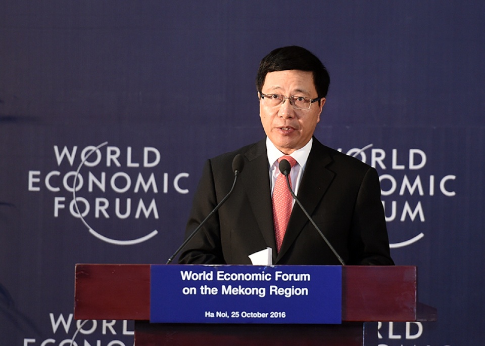 | Phó Thủ tướng Phạm Bình Minh phát biểu bế mạc Diễn đàn Kinh tế Thế giới về khu vực Mekong năm 2016 |
