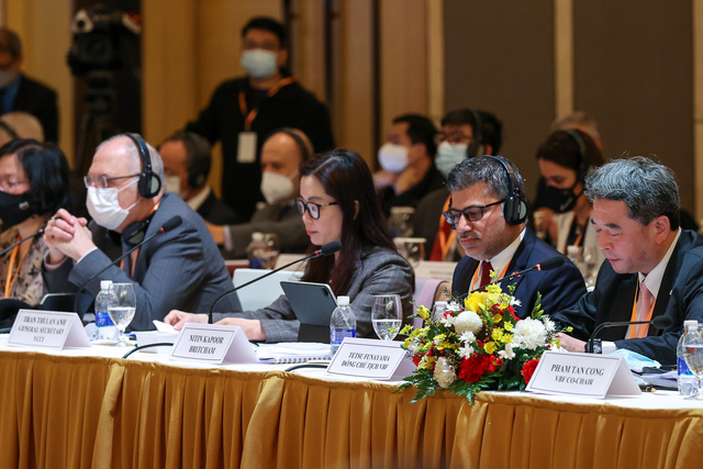 Thay mặt lãnh đạo Đảng, Nhà nước Việt Nam, Thủ tướng bày tỏ trân trọng cảm ơn sự giúp đỡ quý báu của bạn bè, đối tác quốc tế, các doanh nghiệp, nhà đầu tư với Việt Nam thời gian qua; đồng thời chia sẻ với những khó khăn, vướng mắc, mất mát, thiệt thòi, hy sinh của các doanh nghiệp, hiệp hội doanh nghiệp, tổ chức quốc tế do đại dịch trên toàn cầu cũng như tại Việt Nam.